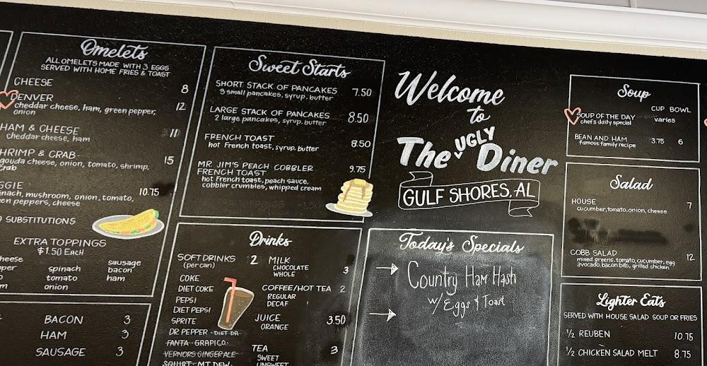 Welcome to The Ugly Diner, your go-to spot in Gulf Shores for delicious American comfort food! Conveniently located at 2200 E 2nd St, we specialize in serving breakfast, lunch, and dinner in a relaxed atmosphere. Our diverse menu features local specialties, excellent coffee, and cocktails, with an array of teas to choose from. Enjoy a quick bite or dine in comfort with our accessible seating options. Perfect for solo diners and groups alike, we offer takeout, happy hour specials, and a cozy ambiance. Join us for a meal that feels like home! Call us at +1 251-224-3182 for reservations.